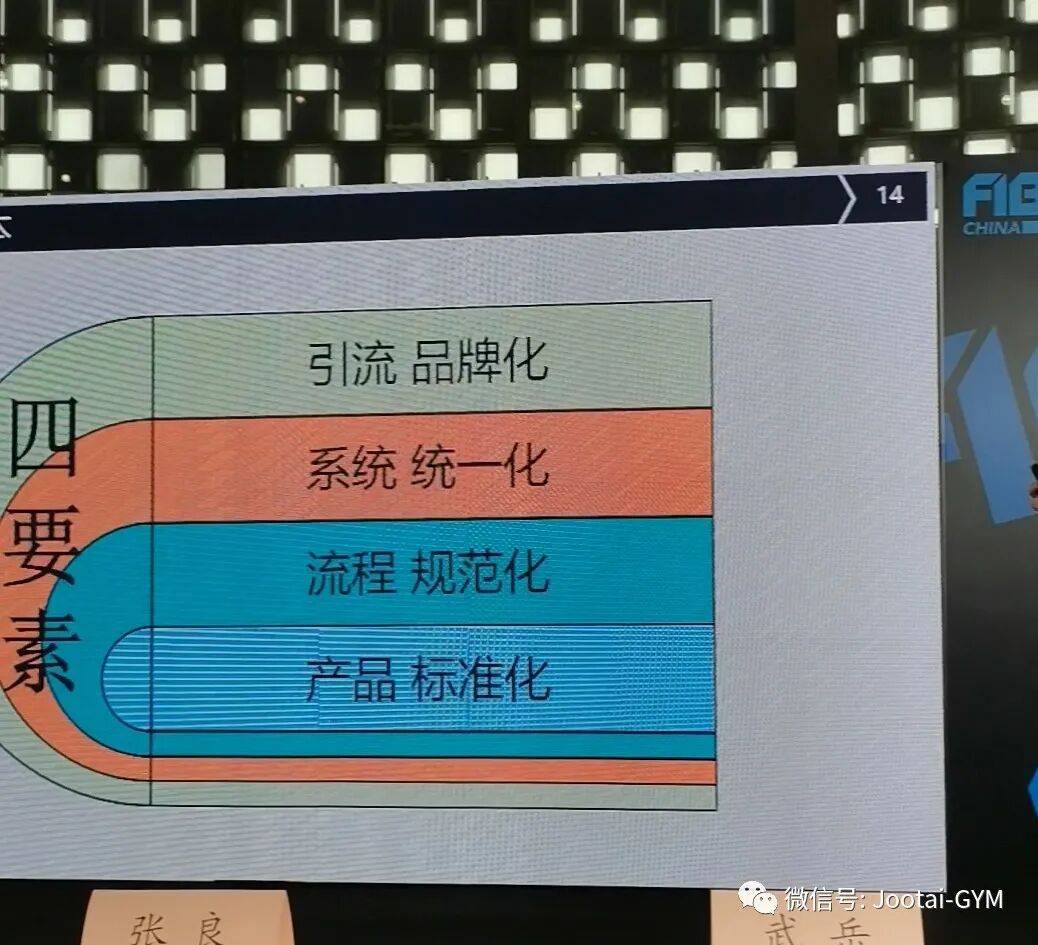 九泰在会议上阐述了健身门店数据的存储与所有权,以及门店如何在运营管理中选择性价比高的设备系统和营销渠道。